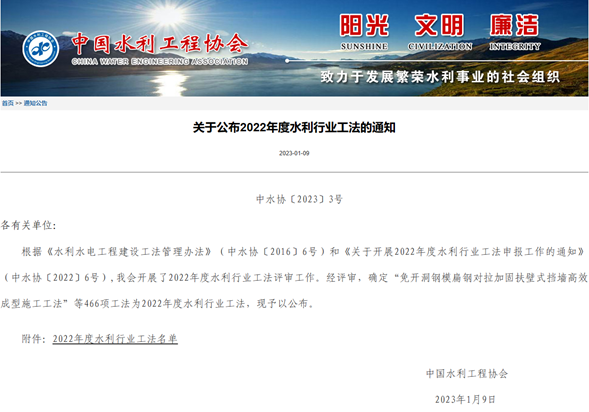 近日,中國水利工程協(xié)會發(fā)布了《關于公布2022年度水利行業(yè)工法的通知》(中水協(xié)〔2023〕3號),公布了2022年度水利行業(yè)工法名單,其中,市水電公司申報的《長距離全斷面巖石頂管施工工法》(工法編號:SDGF1095-2022)順利通過評審,獲評為水利行業(yè)工法。水利工法是指以水利水…......