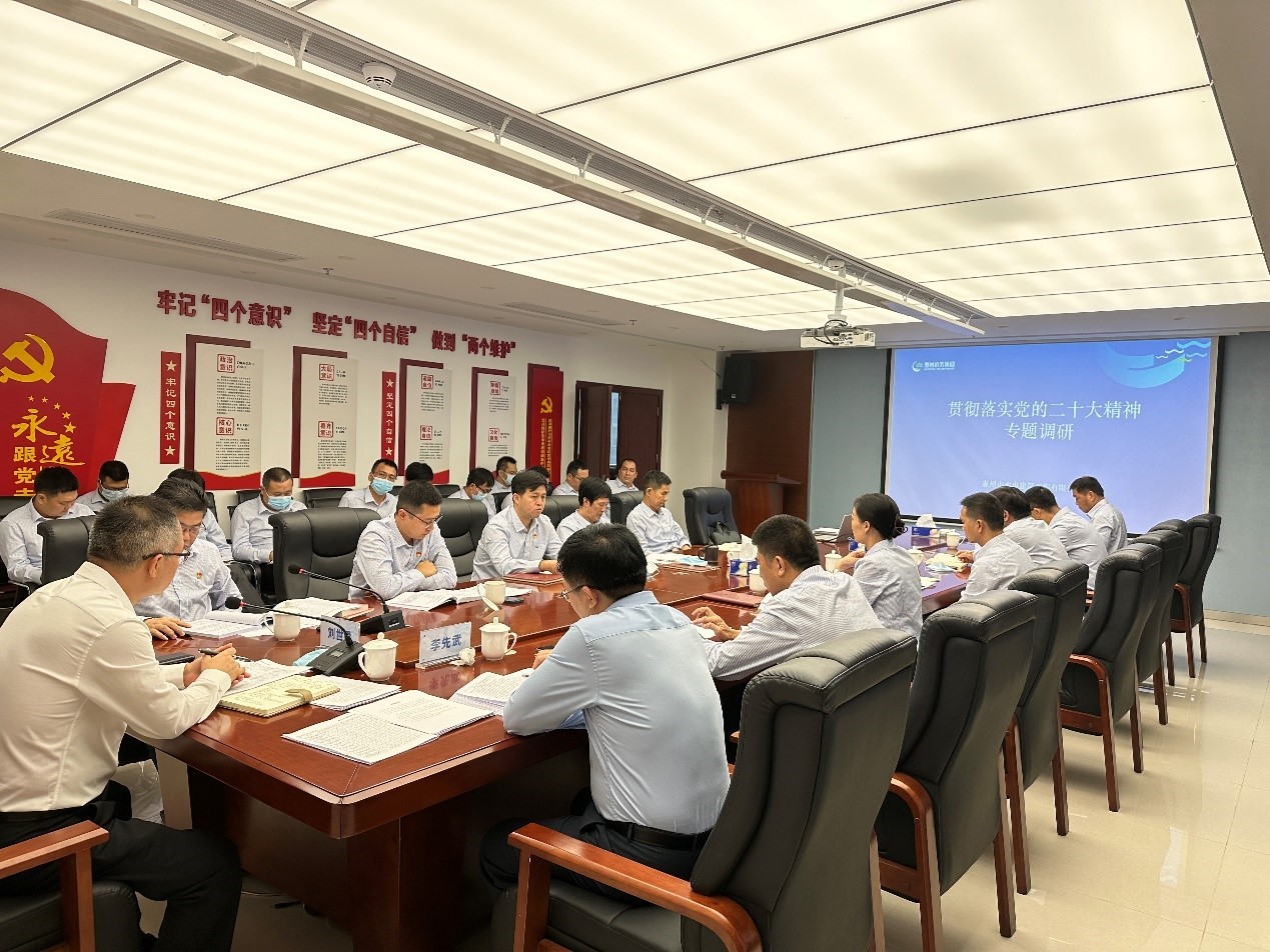 11月25日下午,市水務(wù)集團(tuán)黨委副書記、副總經(jīng)理劉世通到惠州市水電建筑工程有限公司調(diào)研督導(dǎo)并宣貫黨的二十大精神,集團(tuán)建設(shè)部經(jīng)理李先武陪同,市水電公司黨委理論學(xué)習(xí)中心組成員、高管、部門負(fù)責(zé)人、分(子)公司負(fù)責(zé)人及機(jī)關(guān)黨支部全體黨員參加會(huì)議。劉世通為大家講授了題為…......