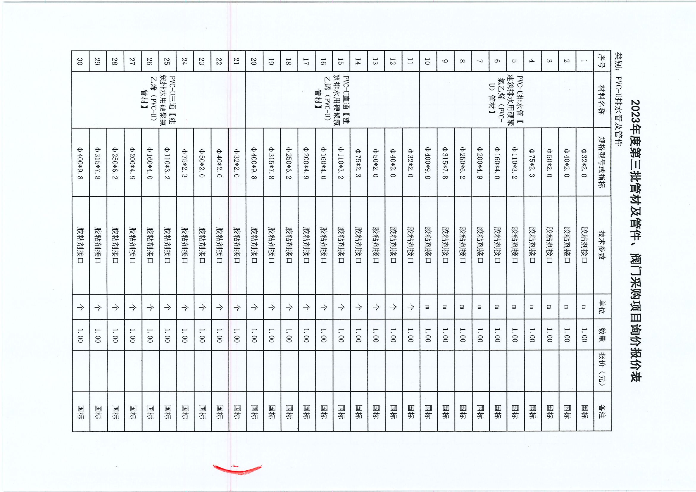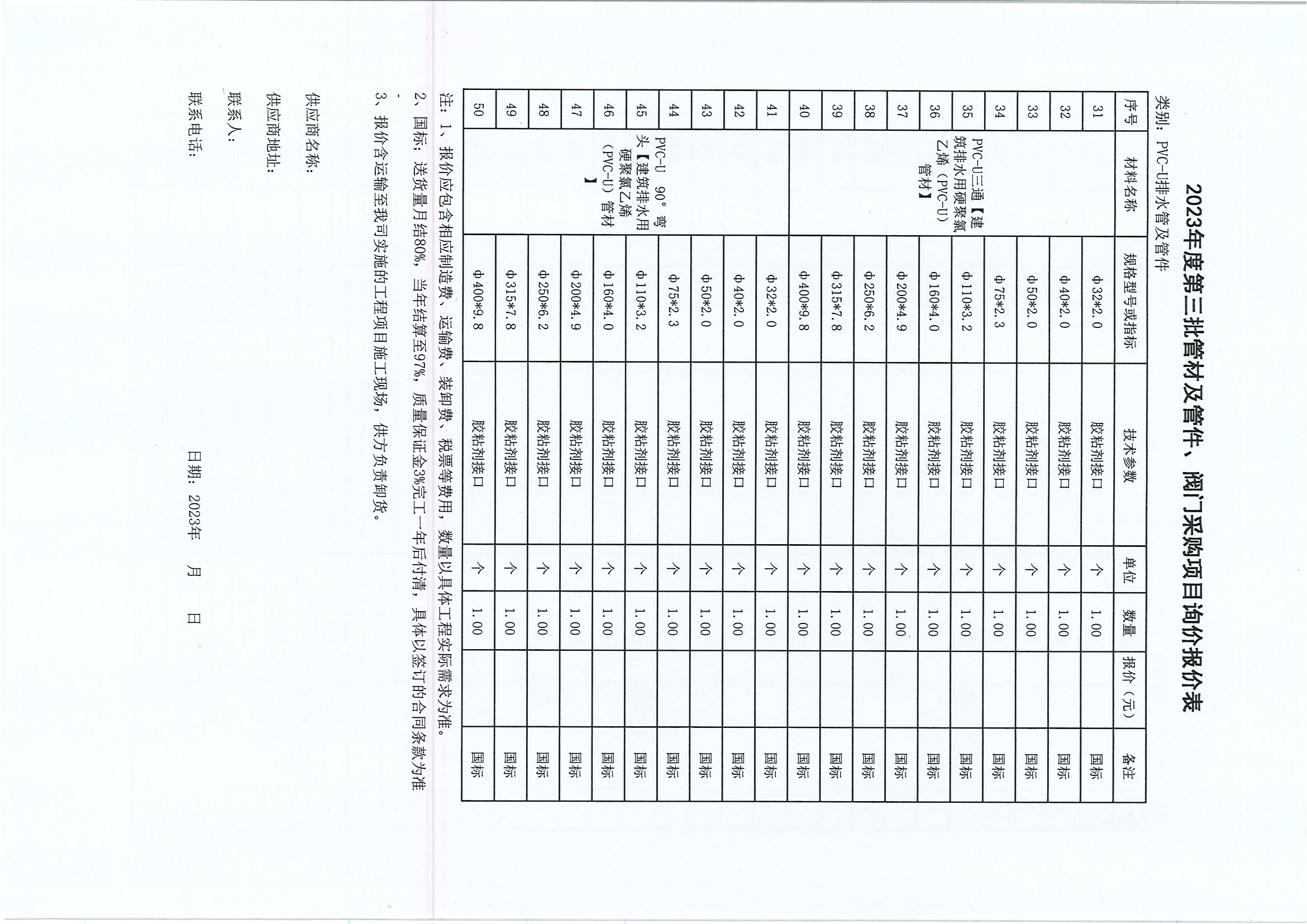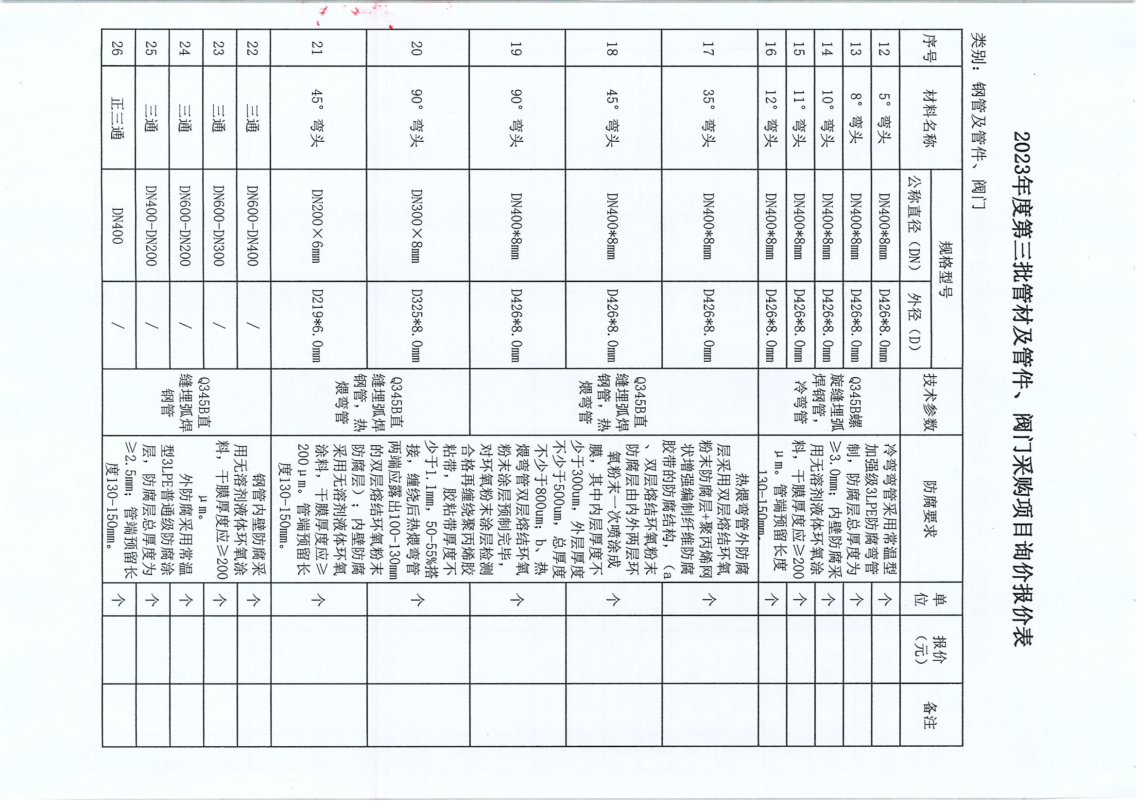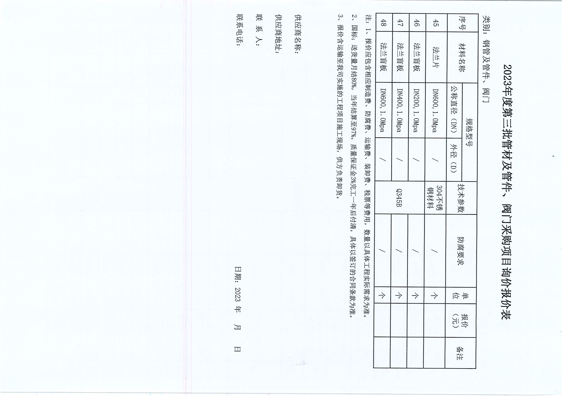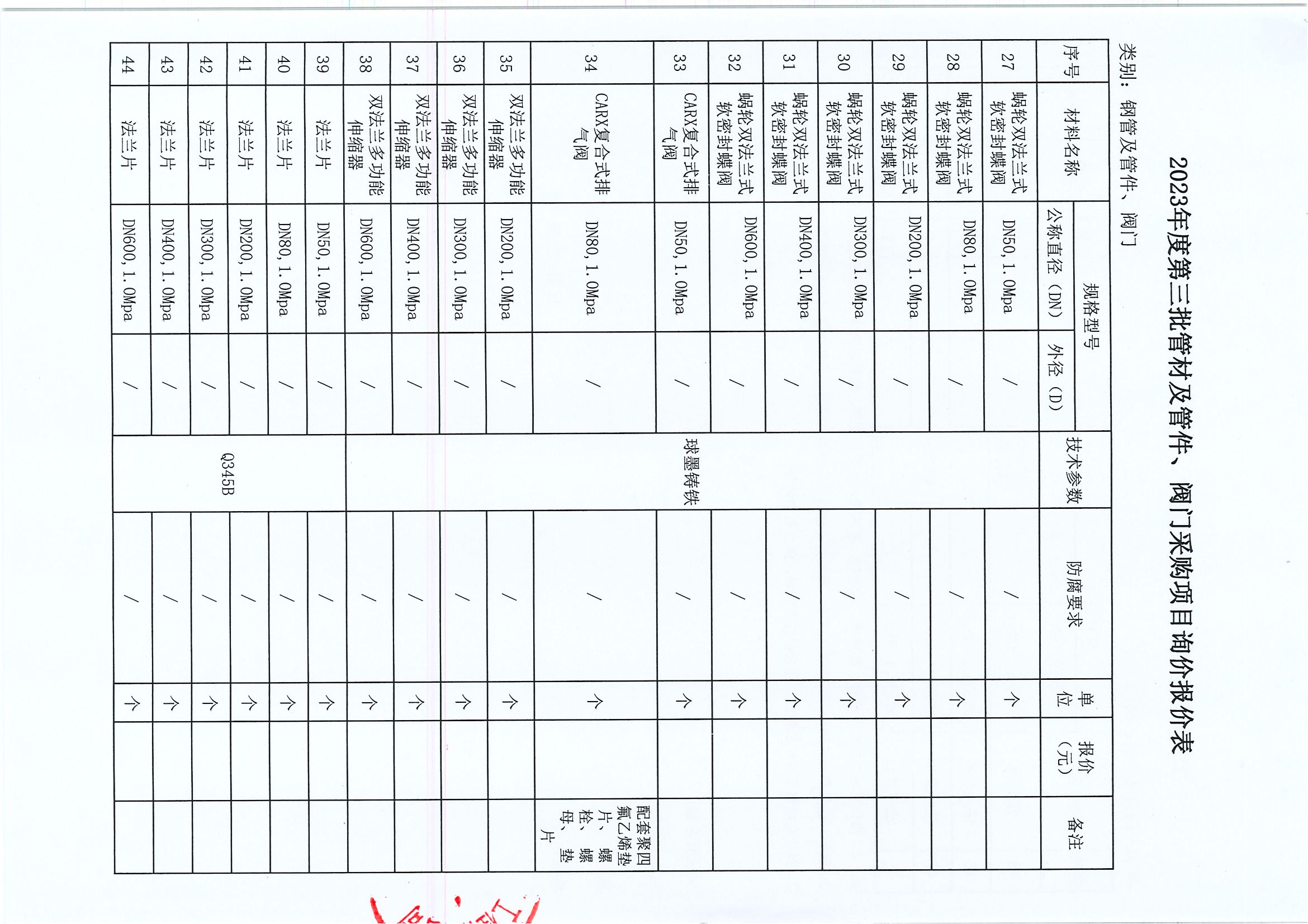 附件:2023年度第三批管材及管件、閥門采購項(xiàng)目詢價(jià)報(bào)價(jià)表