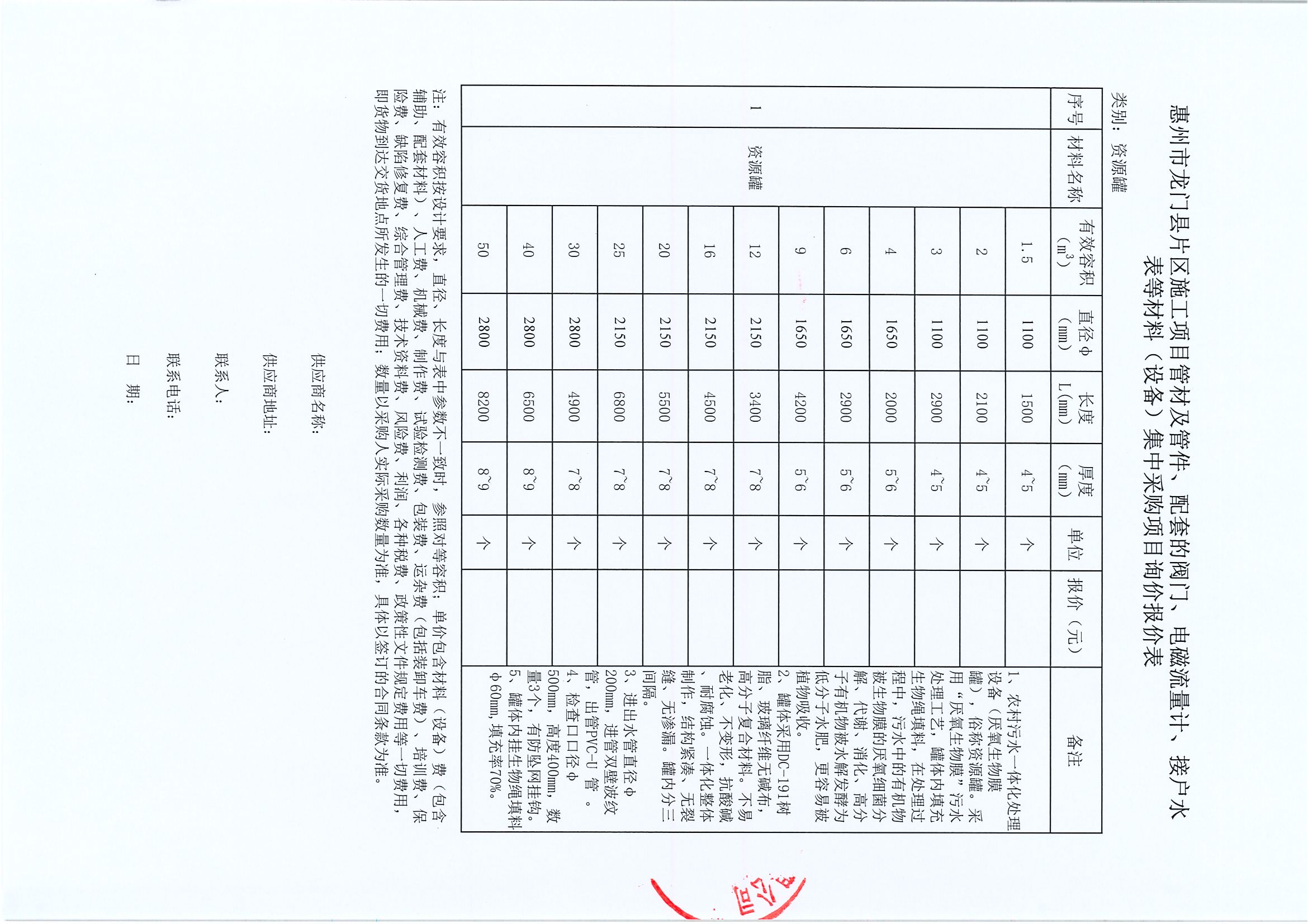 惠州市龍門縣片區(qū)施工項目接戶水表集中采購項目詢價公告