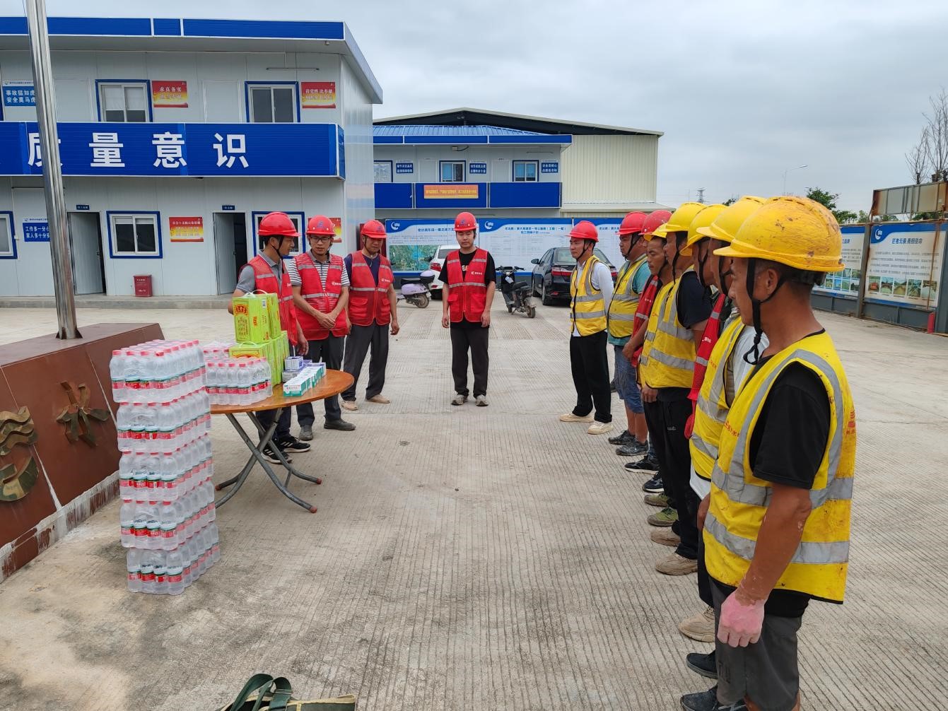 為切實做好防暑降溫工作,保障一線建設者的健康安全,5月28日上午,由我司承建的宏達路(惠大高速至一號公路段)工程(一期)臨時黨支部聯合項目部,在施工現場開展“夏日送清涼”慰問活動,為奮戰(zhàn)在高溫下的工人們送去黨組織的關懷與夏日的清涼。