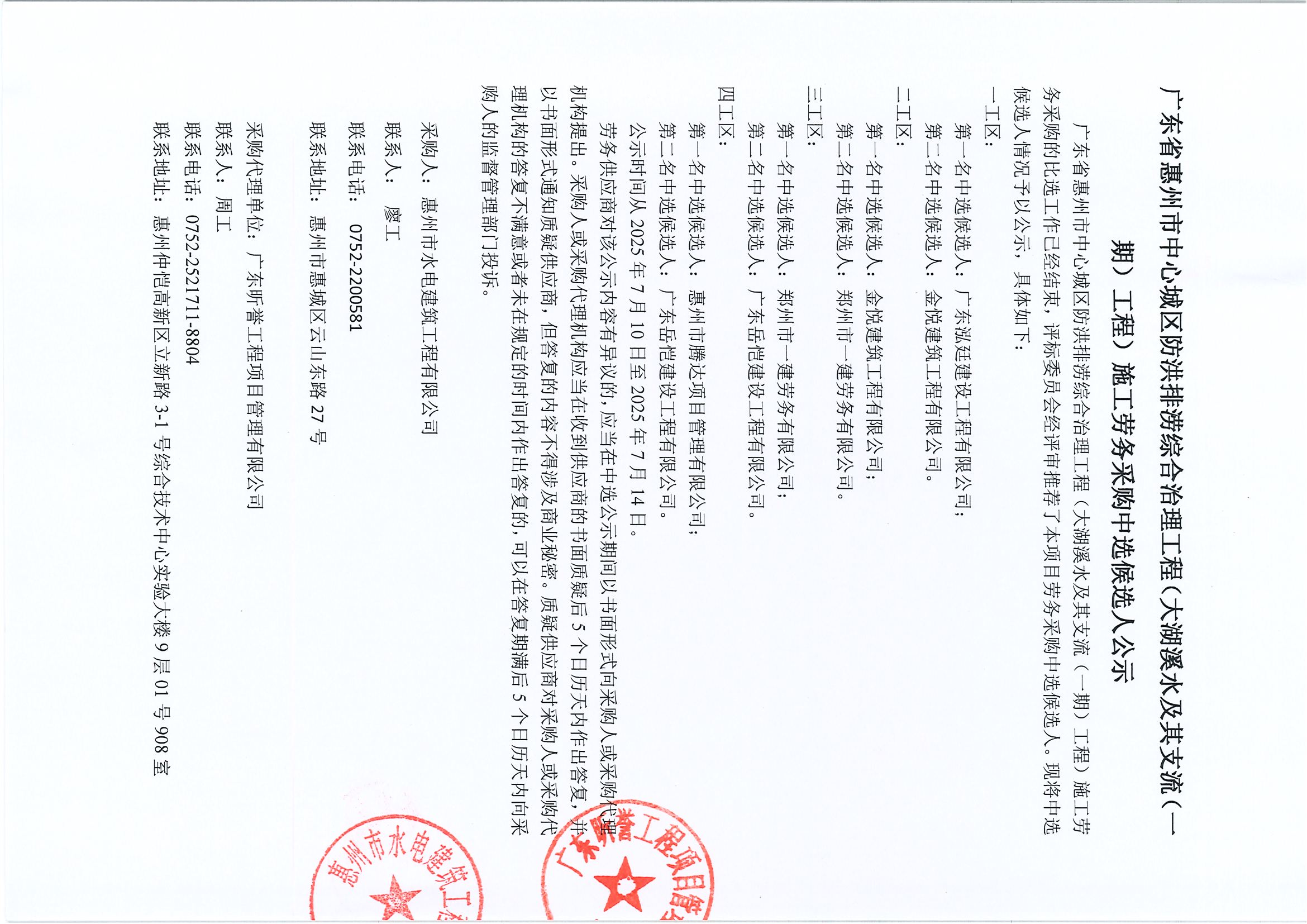 廣東省惠州市中心城區(qū)地下管網(wǎng)系統(tǒng)提升工程—新民排渠及洛塘渠流域排水管網(wǎng)完善項(xiàng)目施工勞務(wù)采購(gòu)中選候選人公示