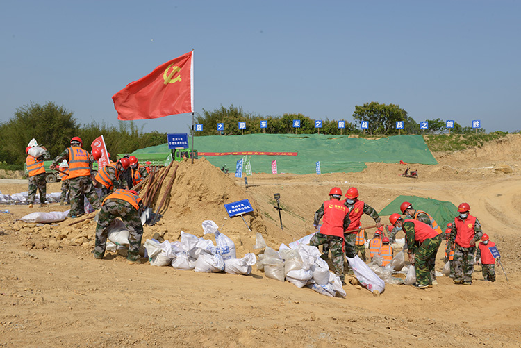 本次防汛應(yīng)急搶險(xiǎn)演練以惠東縣連降暴雨,河道水位上漲導(dǎo)致惠州市白花河防洪排澇治理工程鎮(zhèn)區(qū)閘站施工圍堰被沖破為演練背景,圍繞圍堰搶修進(jìn)行了道路搶修、決口封堵、子堤加高、內(nèi)澇排水、管涌堵漏五個(gè)科目的應(yīng)急搶險(xiǎn)演練。