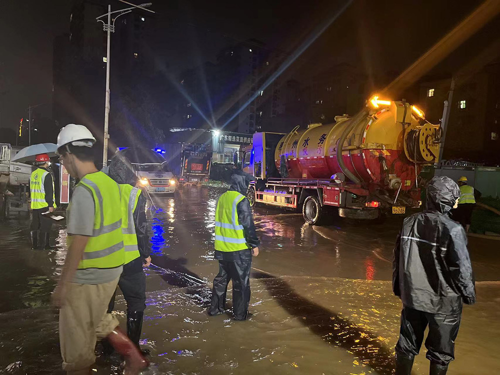 除了直接參與搶險(xiǎn),在惠城區(qū)數(shù)個(gè)低洼地易澇點(diǎn)也隨處可見我們隊(duì)員的身影。受暴雨持續(xù)影響,為配合做好惠城區(qū)低洼地易澇點(diǎn)應(yīng)急值守工作,晚上,我司安排排水應(yīng)急搶險(xiǎn)隊(duì)(第一分隊(duì))與排水中心輪班對(duì)東平下沉通道和濱江路下沉通道兩個(gè)易澇點(diǎn)加強(qiáng)值守,直到確保無險(xiǎn)情發(fā)生方才撤離。