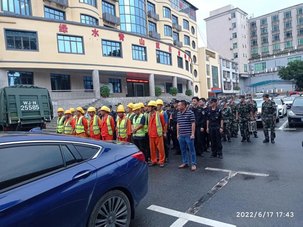 6月17日11:00,接惠州市防汛防旱防風(fēng)指揮部命令,龍門縣因強(qiáng)降雨導(dǎo)致部門地區(qū)出現(xiàn)險情,命令我隊(duì)立即派出隊(duì)伍前往支援搶險救災(zāi)工作,我方迅速出動第一防汛抗洪搶險分隊(duì)21人,攜帶搶險設(shè)備4寸抽排設(shè)備5臺、50千瓦發(fā)電機(jī)1臺,應(yīng)急搶險工作車3臺、防汛編織袋3000個、彩條布、救生衣、鐵鏟等一批物資于當(dāng)天17點(diǎn)前到達(dá)龍門縣三防指揮部報到,18日下午,到永漢鎮(zhèn)合口村防洪堤上,通過現(xiàn)場視頻會議聽從惠州市委劉吉書記對防洪救災(zāi)工作的重要指示,前置搶險隊(duì)伍必須時刻保持臨戰(zhàn)狀態(tài),隨時聽從指揮調(diào)遣。6月19日16:10接龍門縣應(yīng)急局通知,前置隊(duì)伍撤回歸隊(duì)。