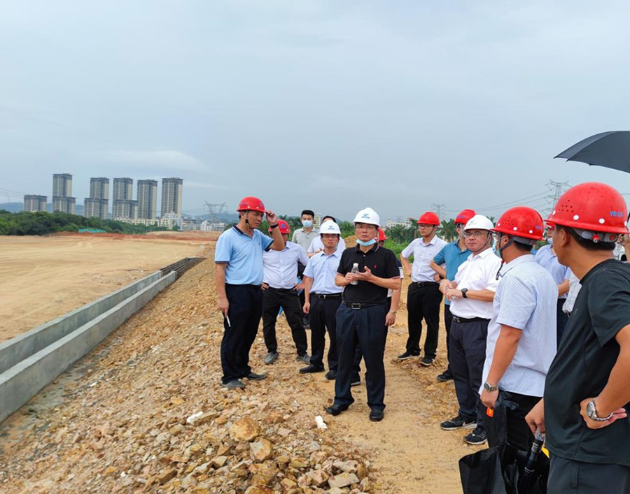 2022年8月3日下午,市水務集團黨委書記、董事長張國偉帶隊來到公司承建的惠州市惠東縣新材料產(chǎn)業(yè)園片區(qū)市政項目、白花河防洪排澇治理工程檢查項目進展情況,市水務集團副總經(jīng)理吳勝華、總工程師陳璐,董事會辦公室、行政部、建設部負責人參加調(diào)研,公司黨委書記、董事長鄭海強,黨委副書記、總經(jīng)理黃敏及項目負責人陪同。