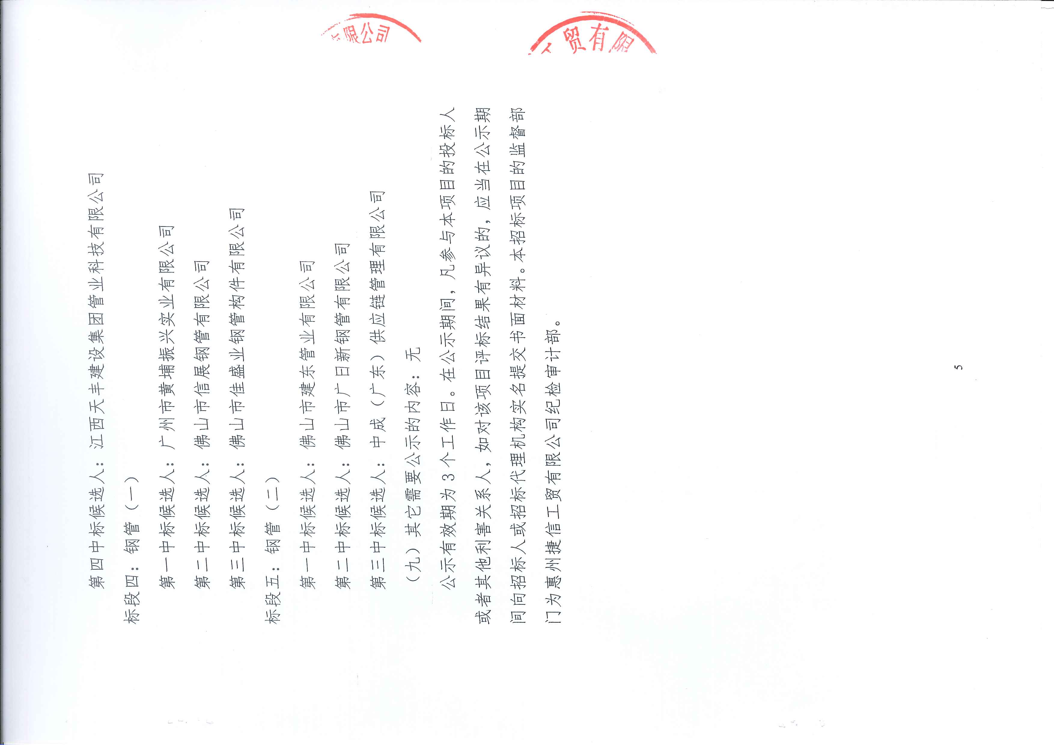 捷信工貿(mào)公司2023年度第一批管材及管件采購(gòu)項(xiàng)目評(píng)標(biāo)結(jié)果公示