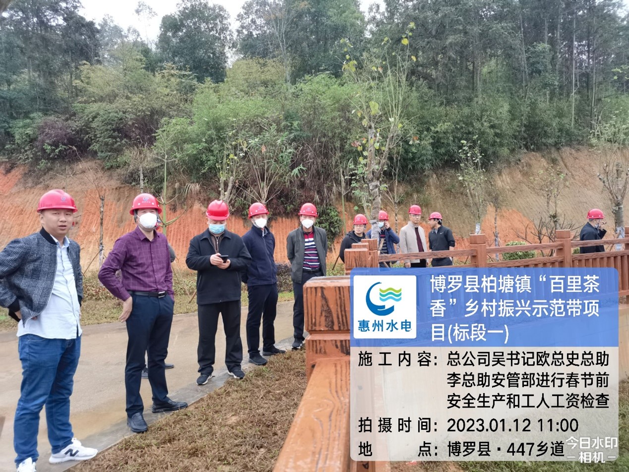 2023年1月12日,市水電公司監(jiān)事會與檢查小組成員到博羅縣柏塘鎮(zhèn)柏塘河干流景觀壩工程、惠州市博羅縣柏塘鎮(zhèn)一二三產(chǎn)融合示范鎮(zhèn)(一期)項目進行歲末年初安全生產(chǎn)、文明施工、完成情況等檢查。