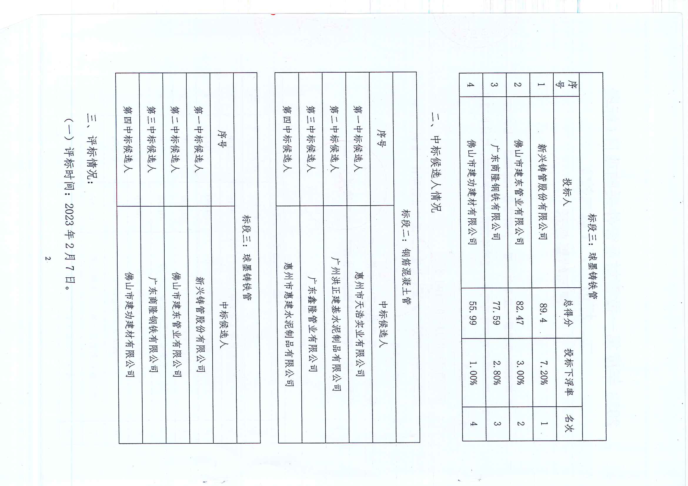 捷信工貿(mào)公司2023年度第一批管材及管件采購(gòu)項(xiàng)目(標(biāo)段二、標(biāo)段三)(第二次)評(píng)標(biāo)結(jié)果公示