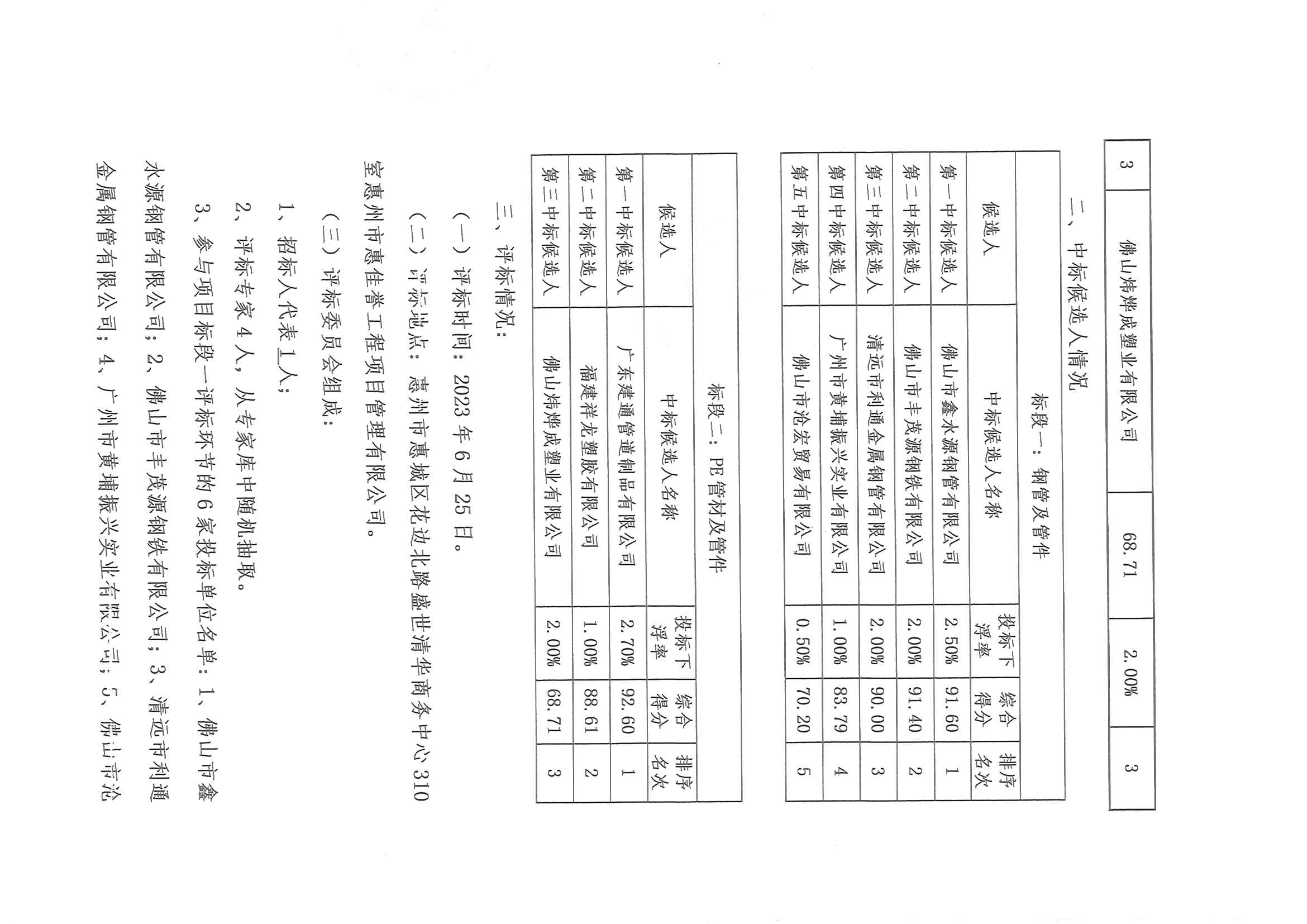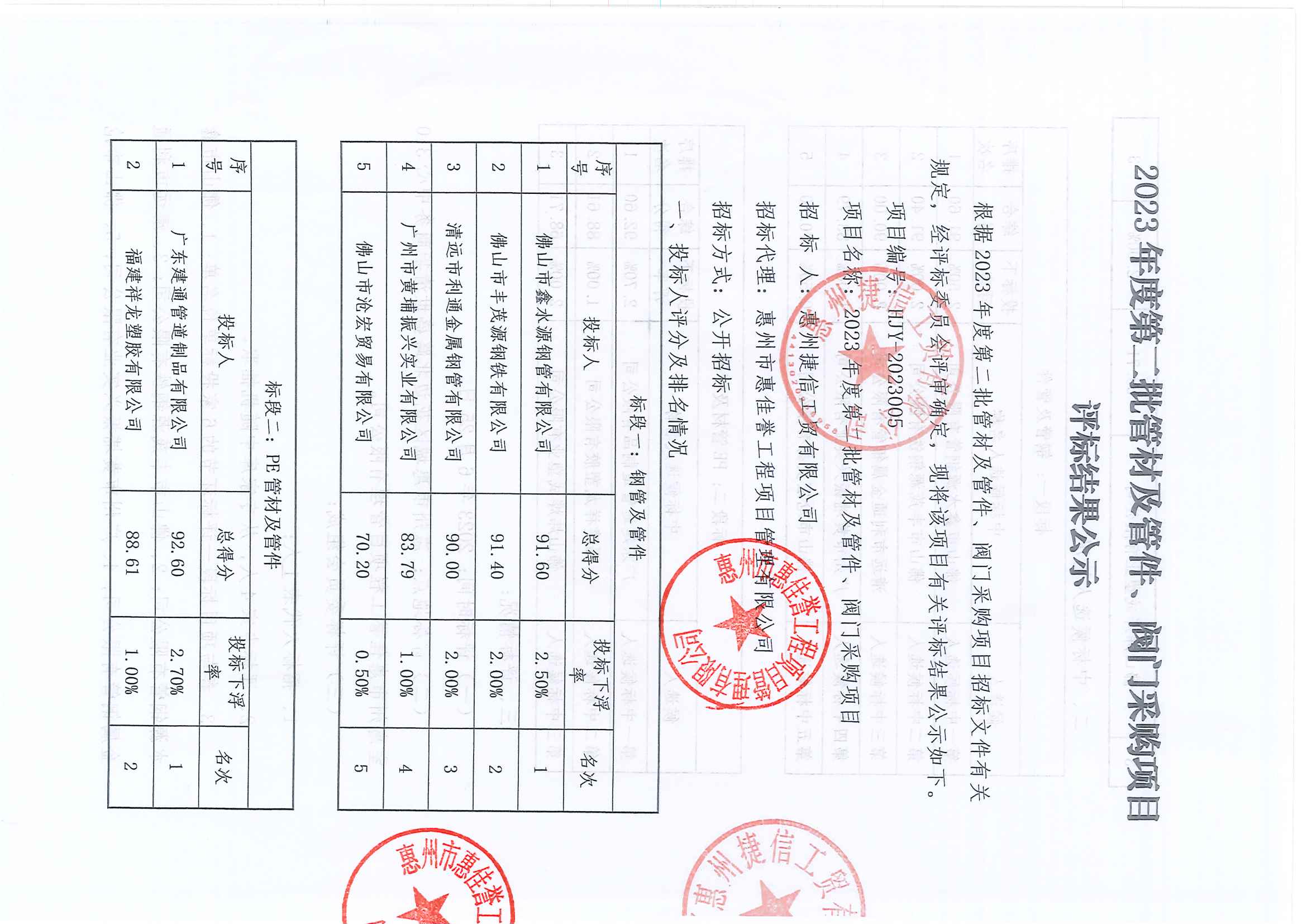 捷信工貿(mào)公司2023年度第二批管材及管件、閥門采購項目評標結(jié)果公示