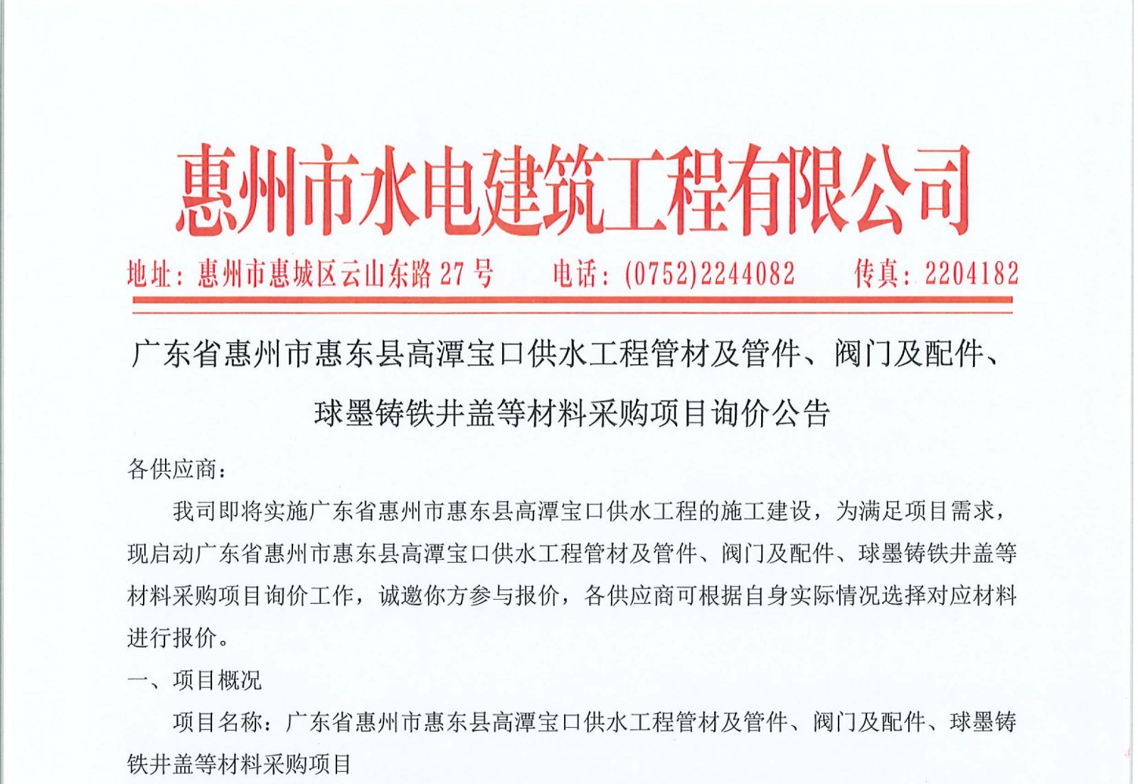 附件:廣東省惠州市惠東縣高潭寶口供水工程施工管材及管件、閥門(mén)及配件、球墨鑄鐵井蓋等材料采購(gòu)項(xiàng)目詢(xún)價(jià)報(bào)價(jià)表......