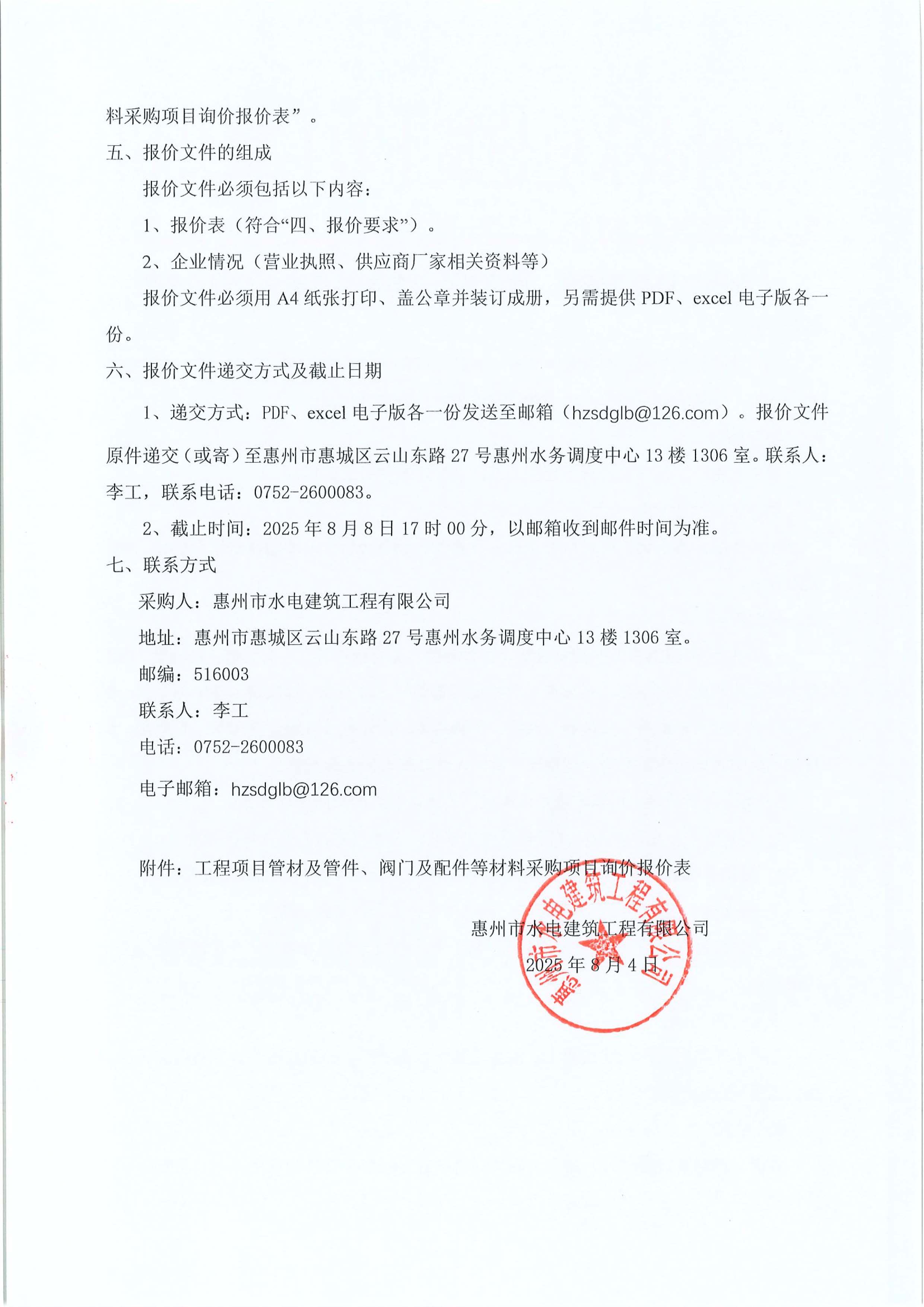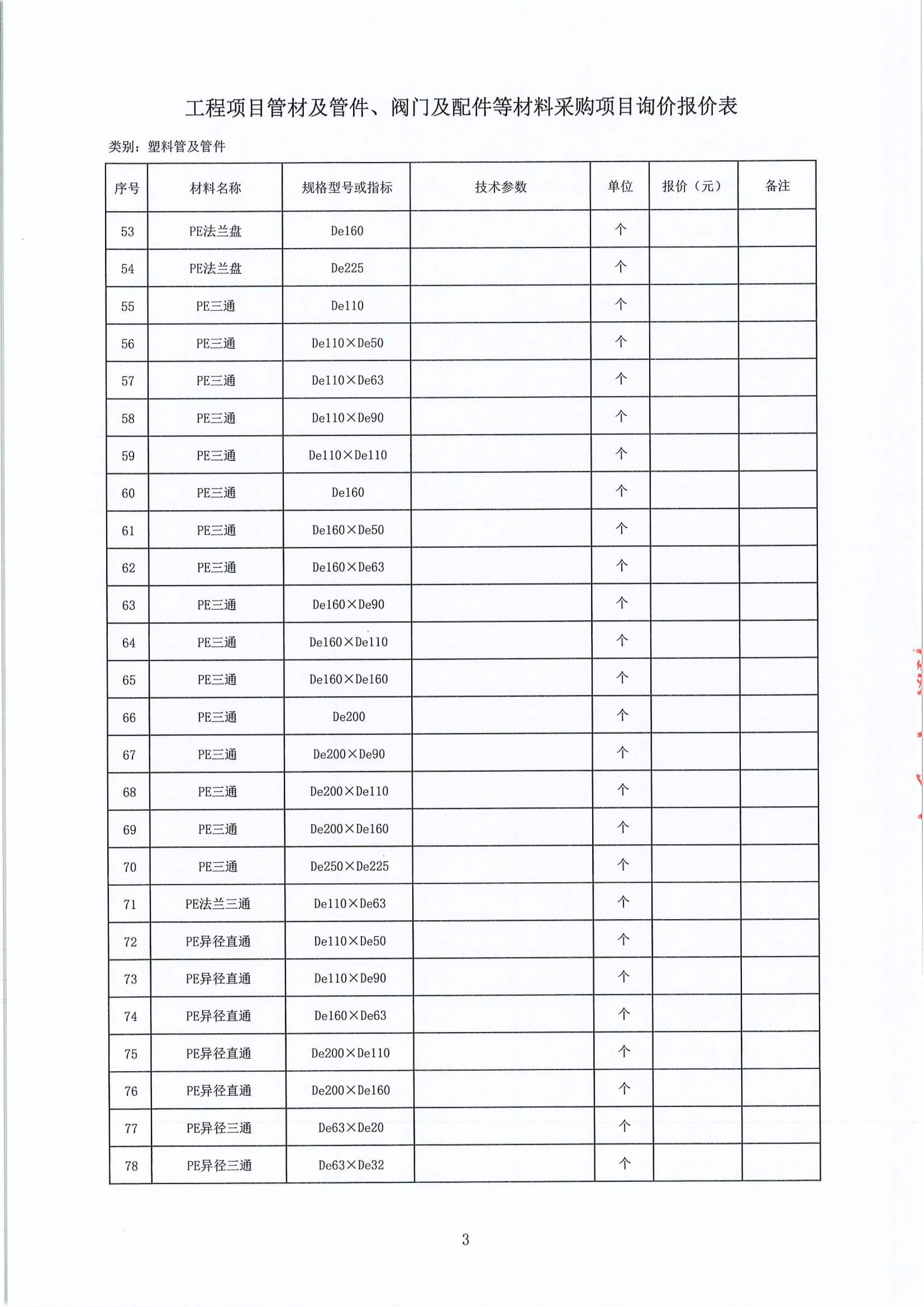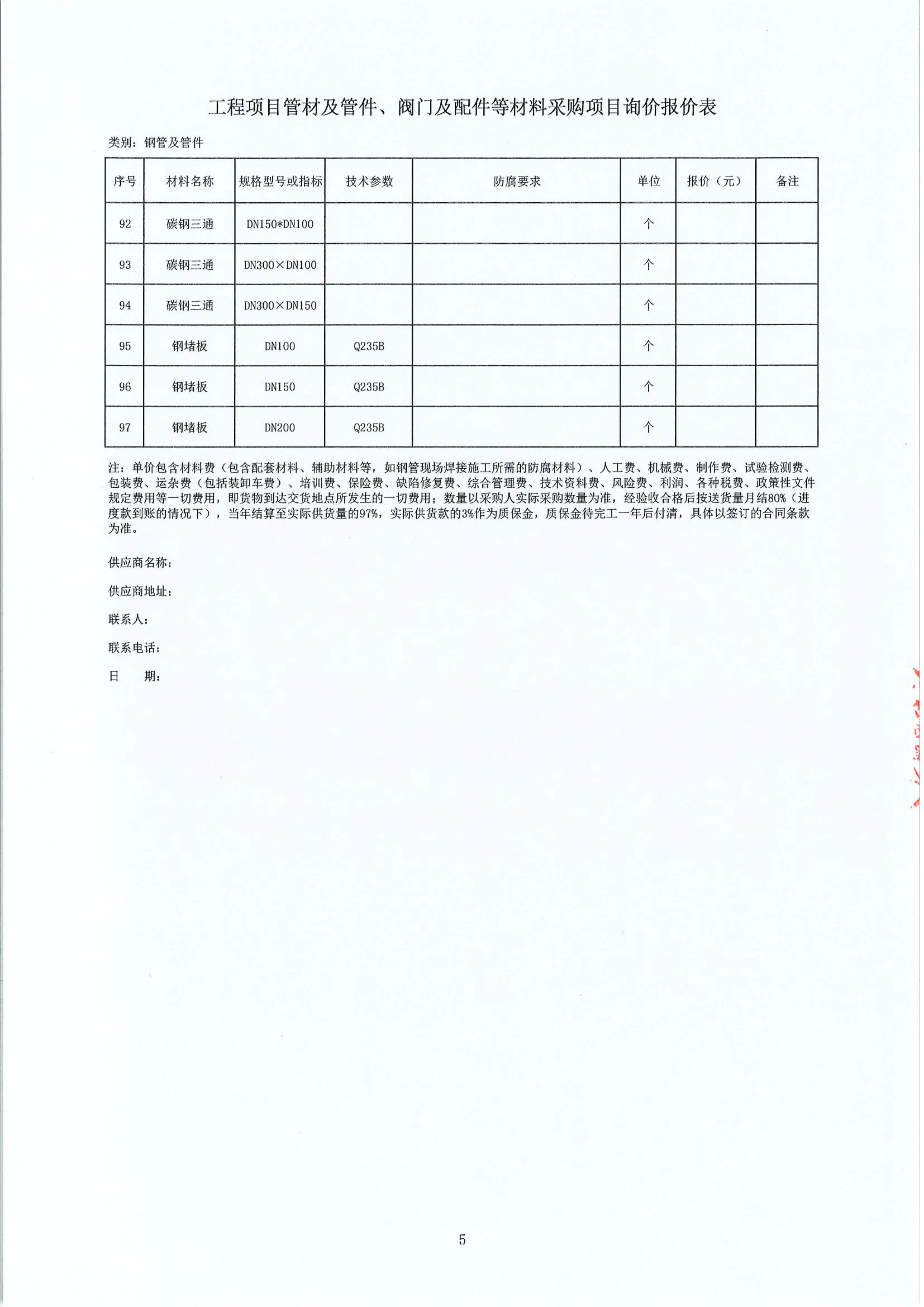 工程項(xiàng)目管材及管件、閥門及配件等材料采購項(xiàng)目詢價(jià)公告
