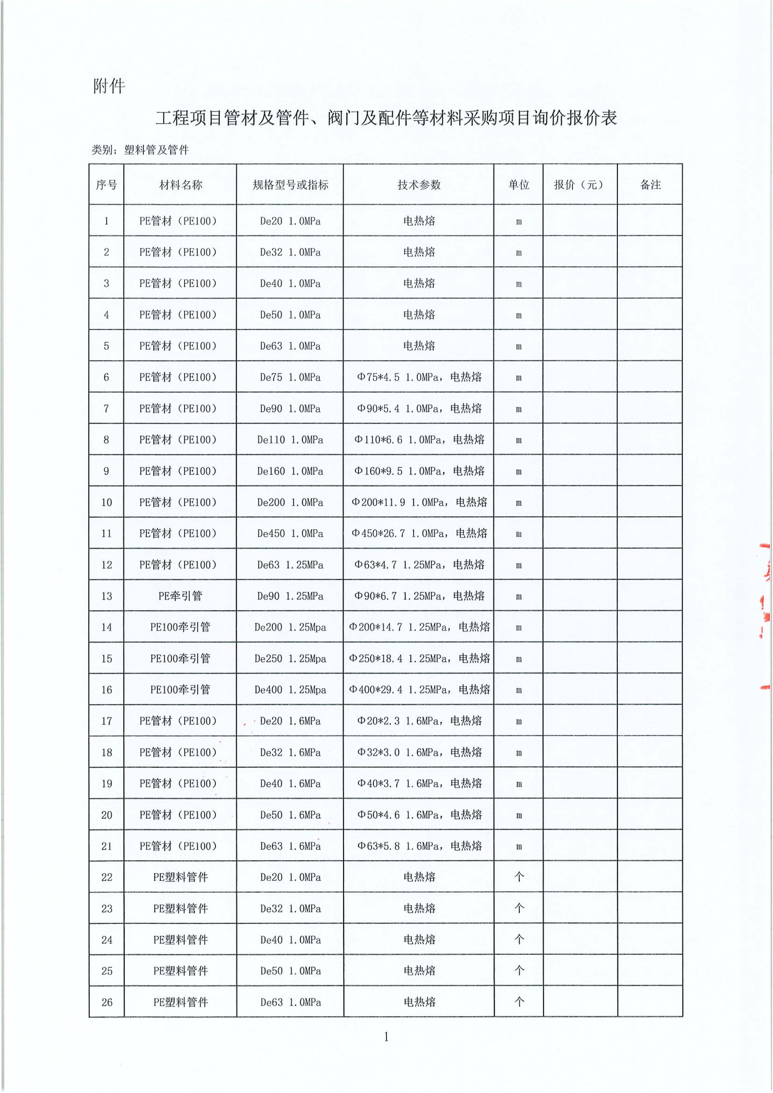 附件:工程項(xiàng)目管材及管件、閥門及配件等材料采購項(xiàng)目詢價(jià)報(bào)價(jià)表