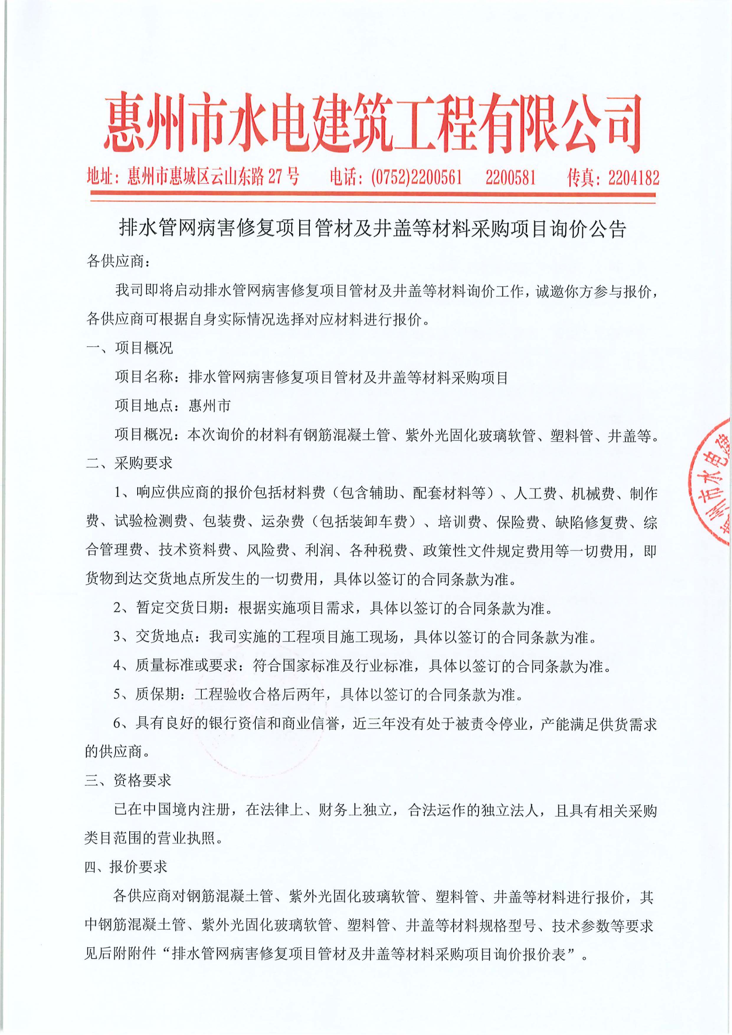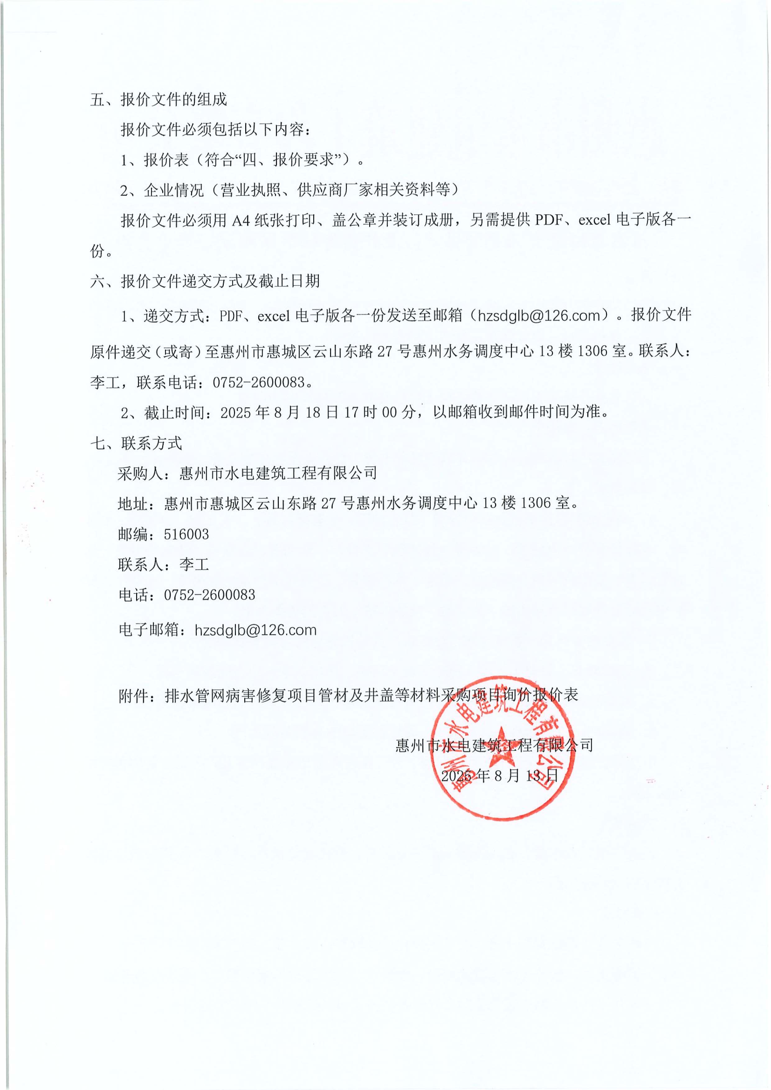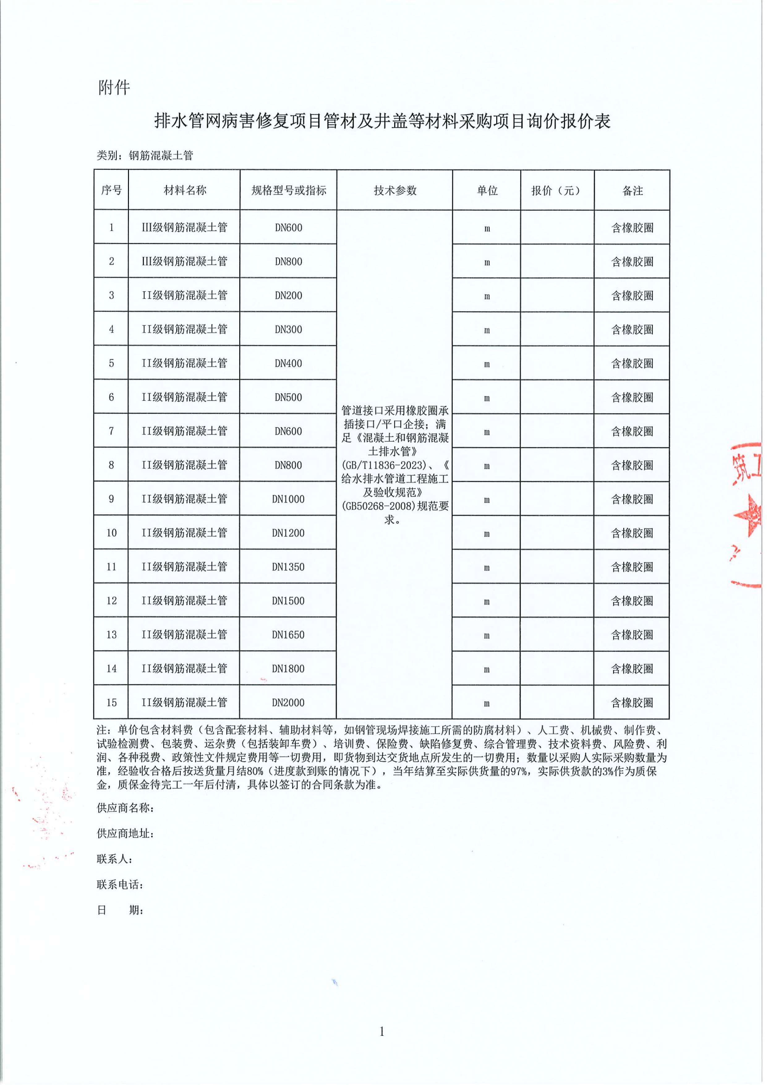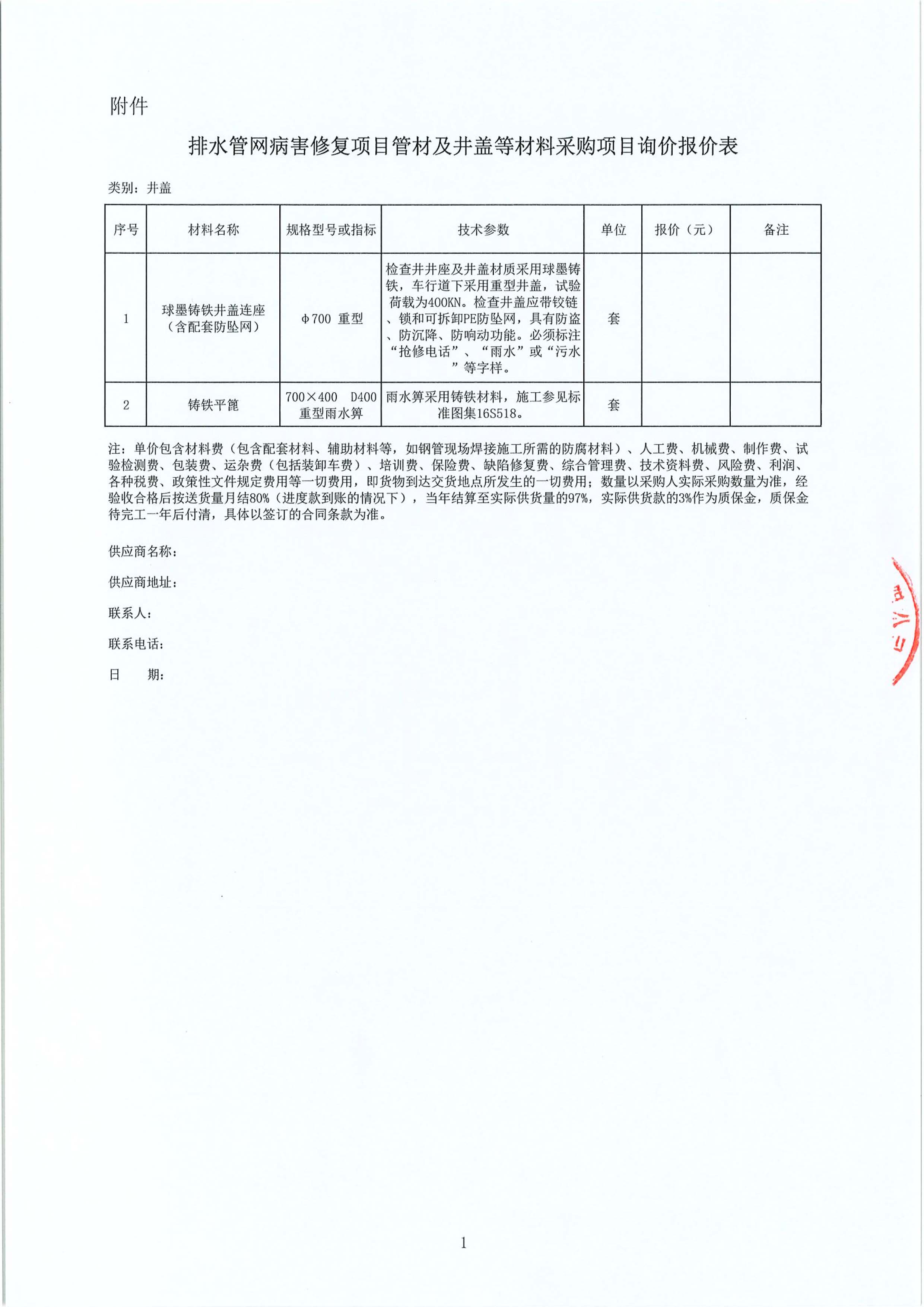 排水管網(wǎng)病害修復(fù)項(xiàng)目管材及井蓋等材料采購(gòu)項(xiàng)目詢價(jià)公告附件: