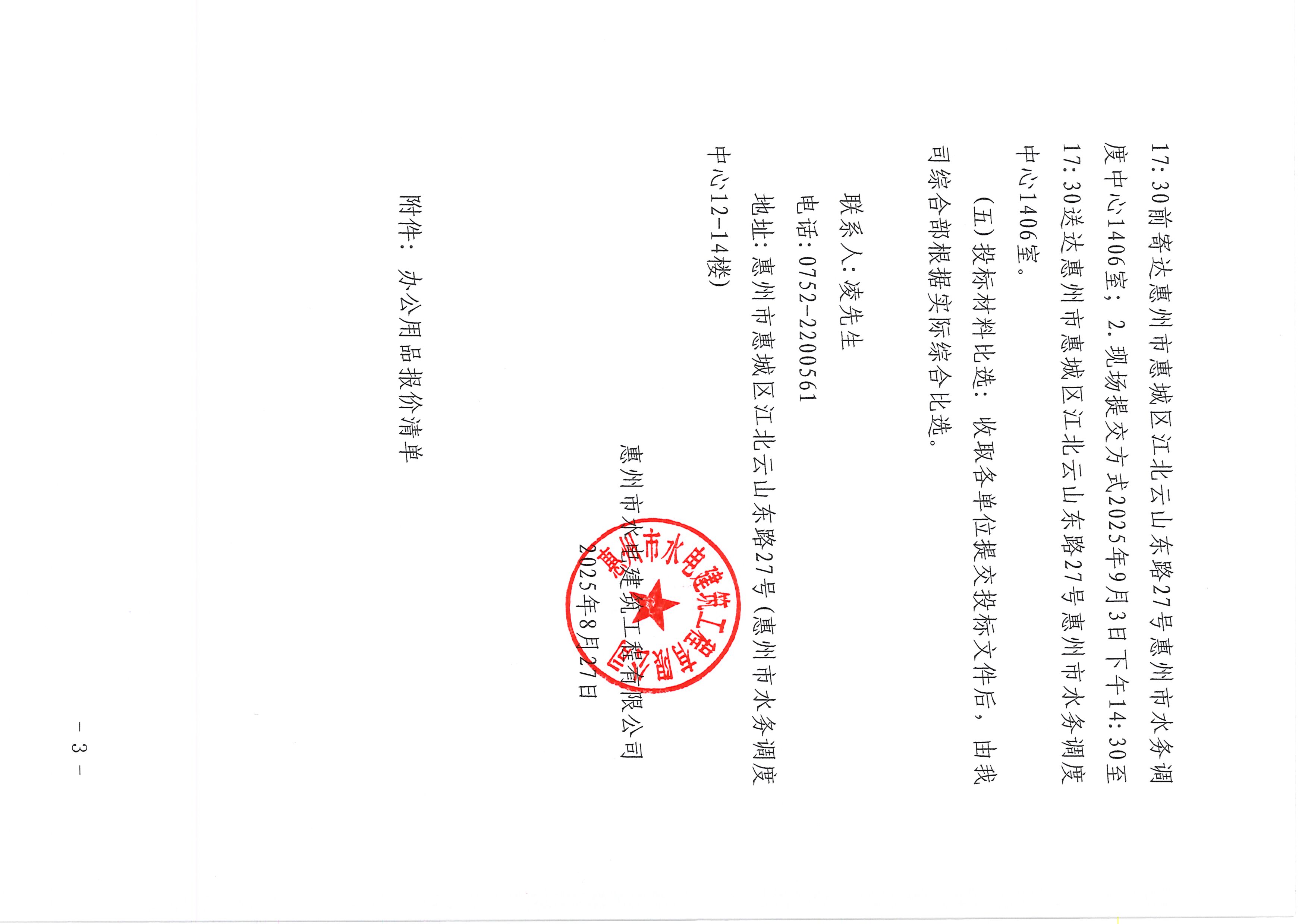惠州市水電建筑工程有限公司辦公用品供應商選取項目采購公告附件: