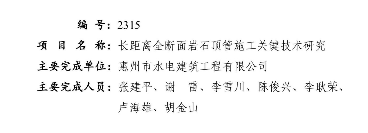 9月14日,廣東省水利學(xué)會(huì)水利科學(xué)技術(shù)獎(jiǎng)勵(lì)委員會(huì)公布了《關(guān)于授予第十五屆廣東省水利學(xué)會(huì)水利科學(xué)技術(shù)獎(jiǎng)的決定》,由市水電公司獨(dú)立完成的《長(zhǎng)距離全斷面巖石頂管施工關(guān)鍵技術(shù)研究》獲得三等獎(jiǎng)。