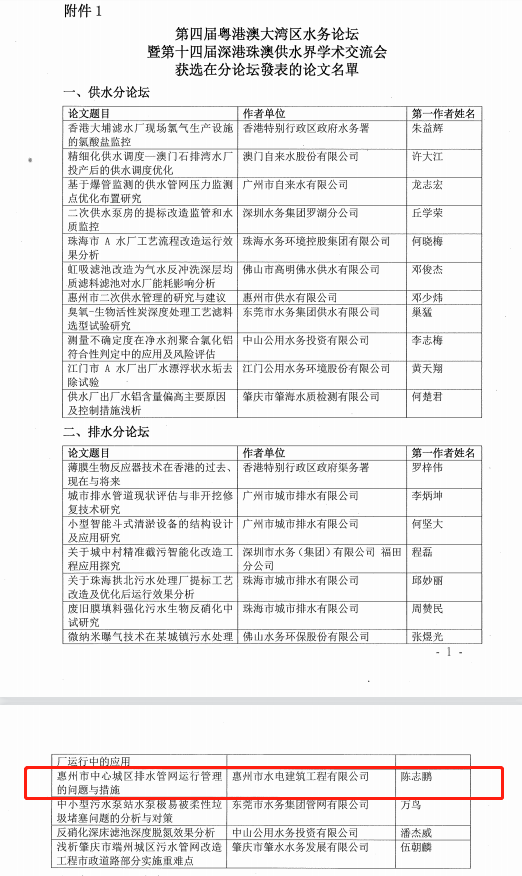 由我司技術(shù)中心陳志鵬所撰寫的論文《惠州市中心城區(qū)排水管網(wǎng)試運行管理的問題與措施》獲選在第四屆粵港澳大灣區(qū)水務(wù)論壇暨第十四屆深港珠澳供水屆學(xué)術(shù)交流會技術(shù)分論壇發(fā)表。