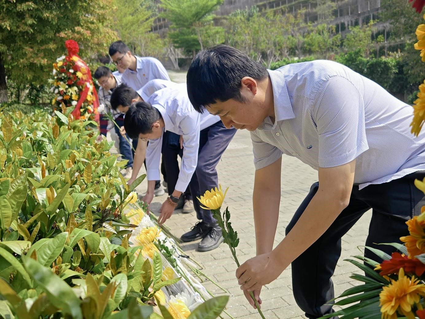 在活動(dòng)中,全場(chǎng)默哀一分鐘,寄托對(duì)先烈的深切緬懷。默哀畢,全體成員依次獻(xiàn)花,表達(dá)哀思,現(xiàn)場(chǎng)莊重有序,傳承信念愈發(fā)堅(jiān)定。